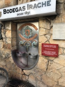 It was cold when we started out the next morning. After I devoured a carb-loaded breakfast, the hotel van took me and a Spanish family to a place where we picked up the Camino going out of town. I had not been walking long before we came abruptly to another Camino icon, the Monasterio de Irache, which includes a winery, the Bodegas Irache. The community of monks is long gone now, a victim of the failure of its community to attract novices, but the wine remains. It is dispensed from a spigot like water.
