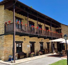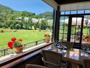 I made such good time on my walk today that I beat Lee to the lodging in Las Herrerias. It was a simple but marvelous country inn, sitting at the base of mountains I would climb the next day. It was only around noon, too early to get into the room, and I didn’t have our luggage anyway. The proprietor got me a large beer and some chips, as I sat in their cool outdoor seating area. This was not any kind of luxury accommodations, but it turned out to be one of our favorite places. I think it had something to do with how it was furnished, and the sight of the mountains. We had both lunch and dinner there, and breakfast the next morning– there was really not much of a town to visit, and I wanted to catch up my writing.