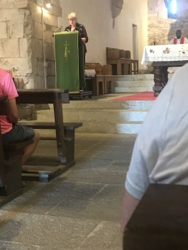 Lee giving the reading at the Pilgrim’s Mass in O’Cebreiro