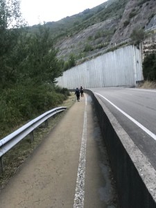 Before getting to the N-VI, we were winding our way down the country road out of town, when a young Dutch man stopped and pointed to a left turn he was proposing. He showed me his Google map route on his phone. He basically was arguing that we could avoid all the switchbacks — and the extra distance they entailed — by cutting left on this road. It seemed high risk-low reward to me. There was no guarantee that his proposed road would cut through, without encountering a stream blocking our path. Others agreed and we continued as before. The N-VI wasn’t far, and the morning light came up. I settled in for a nice walk to Las Herrerias, with only a gradual ascent. I hadn’t had breakfast and nothing was yet open at the first little village we encountered. The second proved a charm, and with breakfast behind me, the day looked and turned out to be promising.